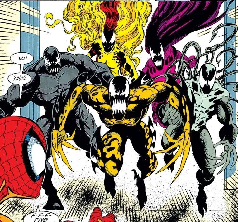 跟《毒液1》反派的暴乱和前段时间在预告中一闪而过的绿色共生体 皮鞭(Lasher)一样,漫画中极痛也是毒液的五个“种子”附体人类之后变成的共生体角色。