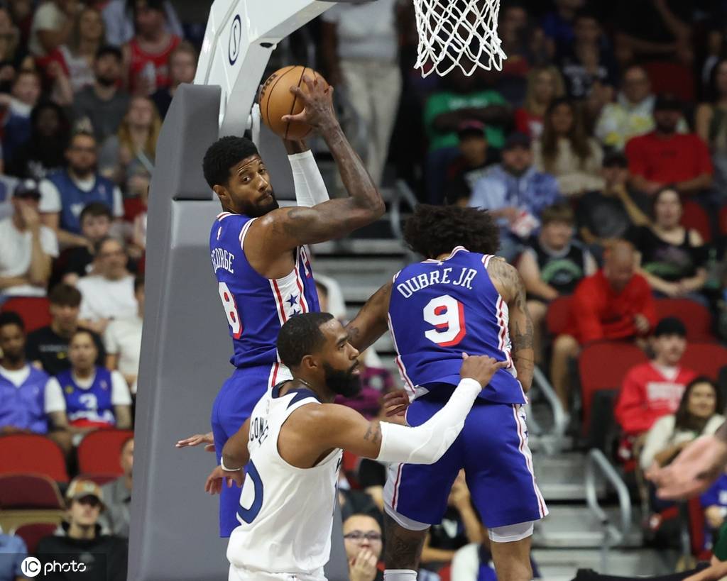 76人队首发:保罗-乔治、泰瑞斯-马克西、凯利-乌布雷、安德烈-德拉蒙德、凯勒-马丁