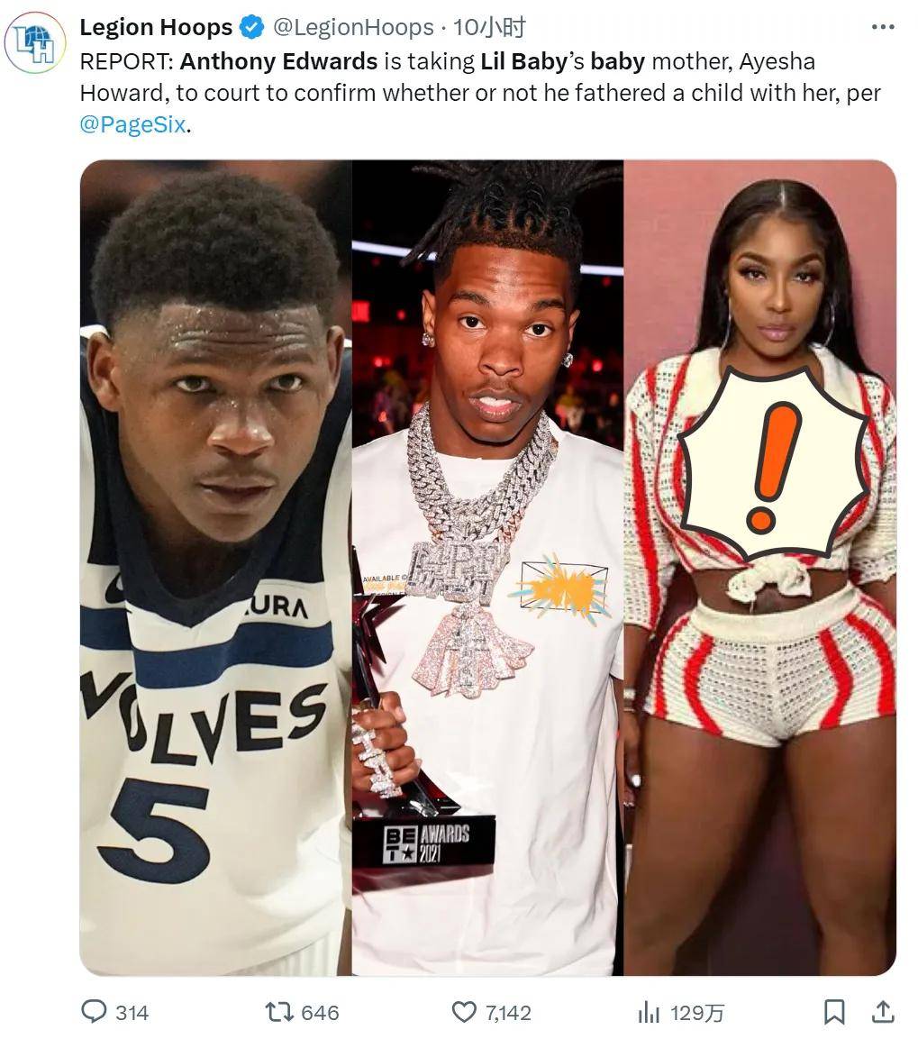 最扎心的还是Lil Baby,相当于帮爱德华兹养了8年的儿子,他会不会找华子要这几年的抚养费?话说回来,华子等于是15岁就当爹了。放眼整个NBA历史,也是相当炸裂。如今华子已经把孩子生母Ayesha Howard告上法庭,要求做亲子鉴定。