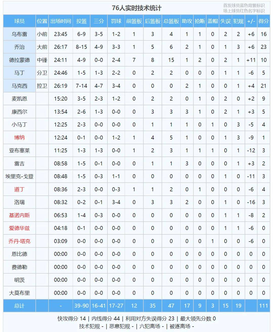 北京时间10月12日,NBA季前赛,森林狼121比111战胜76人。恩比德休战,乔治迎来自己的76人首秀,他只打了26分17秒,15中8砍下23分6板2助1断,正负值 6。爱德华兹出战23分半,14中7拿到16分4板3助1断,正负值是0。