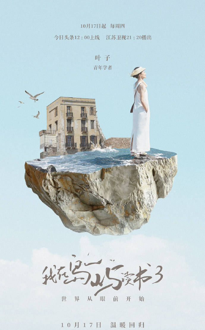 《我在岛屿读书》第三季官宣定档:10月17日起,每周四中午12:00今日头条、21:20江苏卫视,锁定《我在岛屿读书3》,一起翻开世界这一页。这一季的常驻作家是余华、苏童、程永新和叶子,节目花絮当中,西川和房琪也回归,豆瓣介绍当中,第三季的节目是在希腊录制,因此,部分希腊作家也会出现在节目当中。