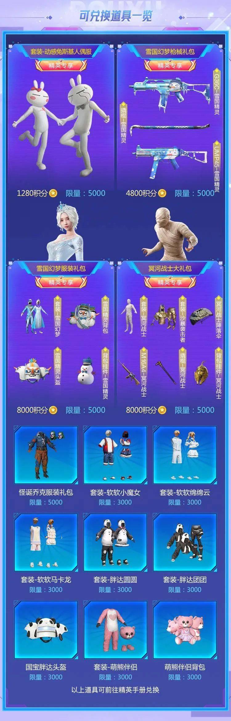 包括雪国幻梦枪械礼包、套装-动感兔斯基人偶服(仅限若若直播间兑换)、