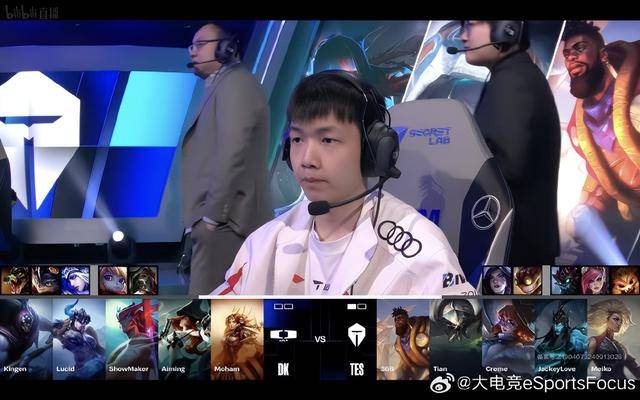 比赛开局2分钟,TES下路落后一个闪现的情况下,将DK辅助给击杀,与此同时中路小奶油被DK上路贾克斯绕后给抓死。第一组巢虫打完,双方河道团战一波3换3。