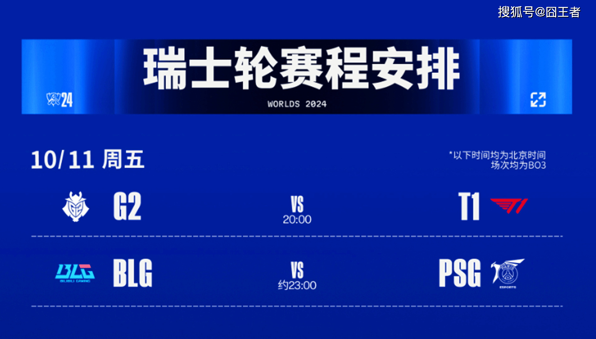 按照赛程,10月11日第七天的赛事,将进行两轮BO3比赛,分别是G2对阵T1,BLG大战PSG的两场比赛。