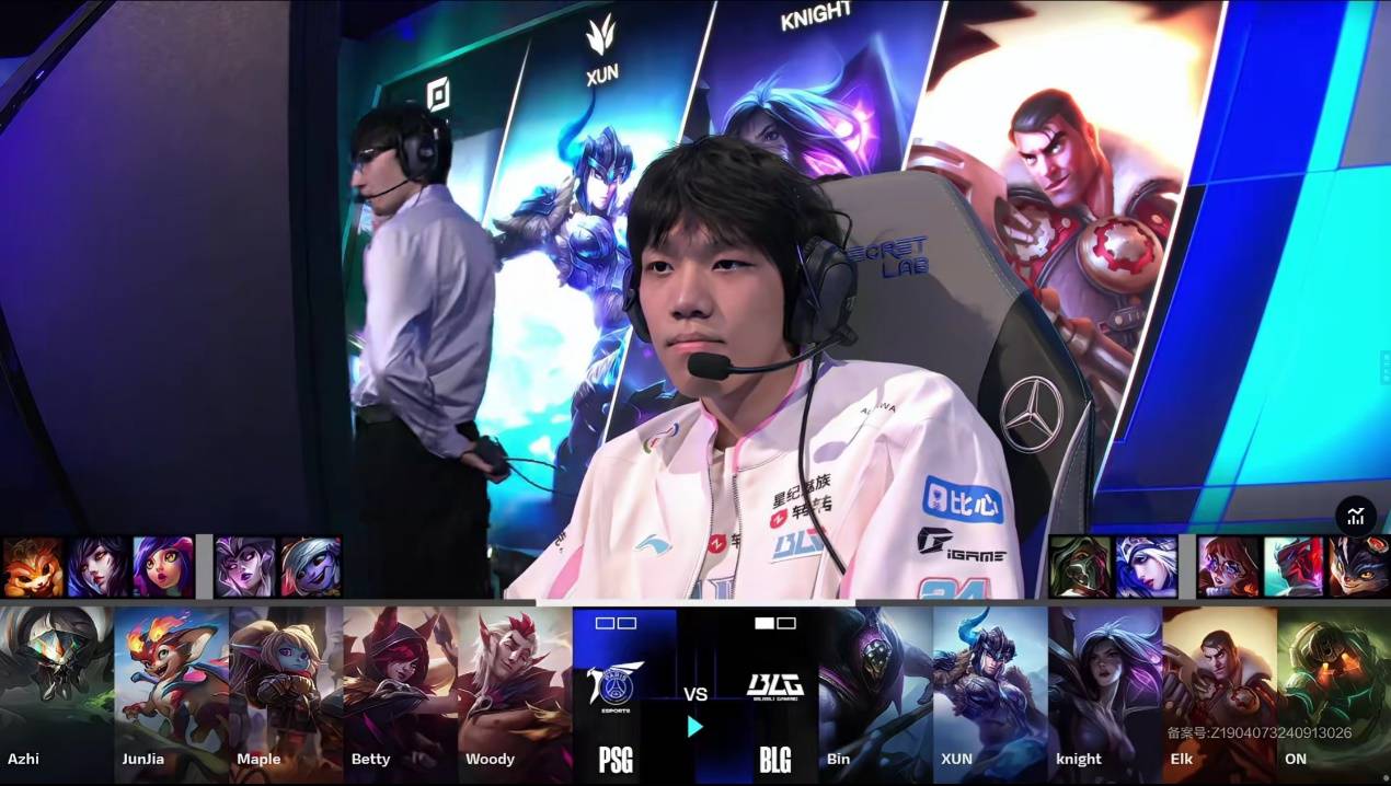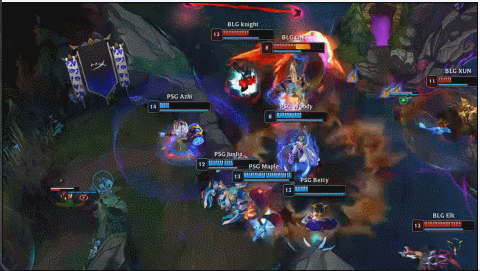 21分钟双方野区爆发团战BLG打出1换2,随后PSG尝试绕后先手Knight失败,Bin直接TP绕后一波进场BLG打出0换4后拿下大龙。大龙拿下后BLG先拿小龙后打团Elk连续W命中,BLG打出0换2破高地塔。