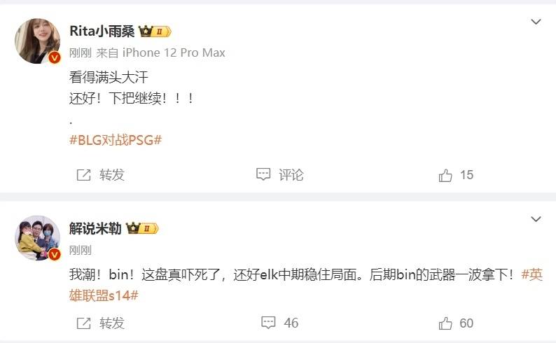 虽然说这场比赛赢下来了,但相信整个LPL的粉丝包含解说们都惊出一身汗,因为两队实力摆在这里,BLG打PSG就跟回来打LPL联赛一样,怎么也不至于打成这样,然而现实就这!本应是我们的强势区,最后被PSG给追着打,这也能够看出来,BLG现在全队的状态和压力非常大!在赛后Rita、米勒等人都纷纷表示看的吓死人,还好是Elk和Bin能够站出来,不然这就GG了!