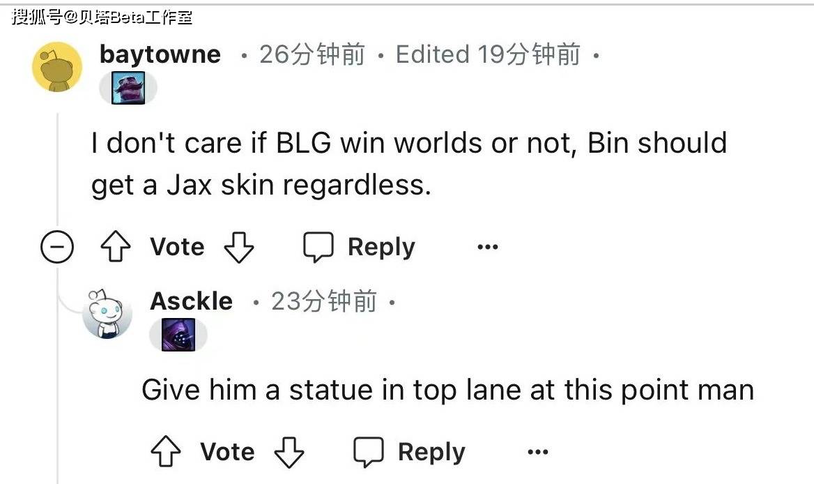 -我不在乎BLG能否赢得世界冠军,但是无论如何Bin都该获得贾克斯皮肤。