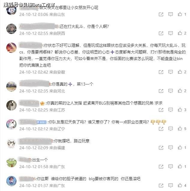 在ON的个人微博下方,不少粉丝和网友们都非常生气。怒斥ON:还在打大乱斗,你是人吗?状态差就算了,但是每天打大乱斗和其他游戏,这就是职业态度的问题了!有那时间rank不好吗?以前你不是这样的啊!非要去祸害其他想赢的队友吗?赶紧离开BLG吧!