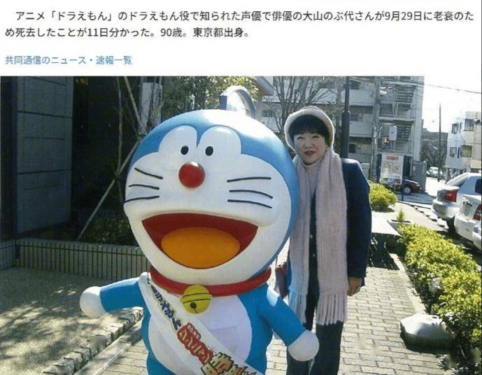 据日媒10月11日报道,日本女声优、歌手大山羡代于9月29日去世,享年90岁。她的代表作品有《哆啦A梦》哆啦A梦(朝日电视台版第1代,共计第2代)、《海螺小姐》矶野胜男(初代)、《弹丸论破》黑白熊等。