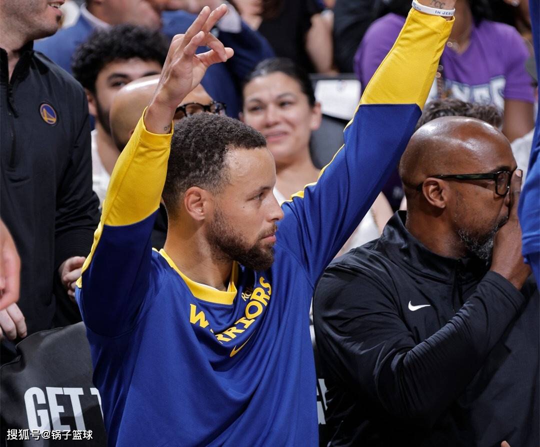 库里同样十分开心,比赛中面对场上队友的高光发挥,“人类庆祝精华”之一的库里又在场边欢呼雀跃起来。