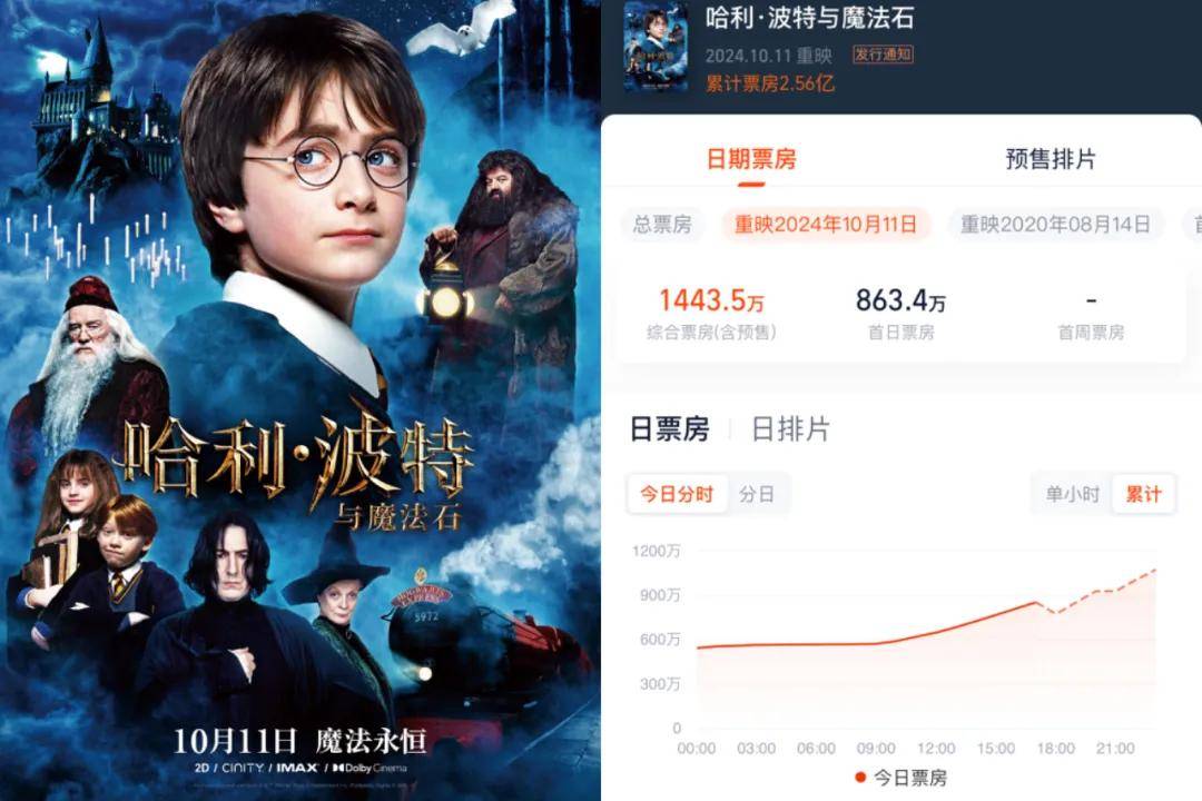 截至毒眸发稿前,第一部《哈利·波特与魔法石》已经收获了1000万票房,位居当日票房亚军,在今年的重映片中当属翘楚,只是不知道这样的热度趋势在接下来上映的每一部中还能持续多久。