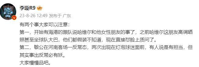 社交媒体IP的改变,王飞此前晒出的照片、王飞打卡的诸多中超比赛以及和球员的合影,这也让很多球迷开始质疑33岁的王飞,为什么呢?虽然王飞和哈维尔属于同一家公司,可是两个人的互动实在太过于频繁,特别是当王飞并不是记者而不是球队家属的时候却进行跟队,这也引发了很多球迷的质疑。