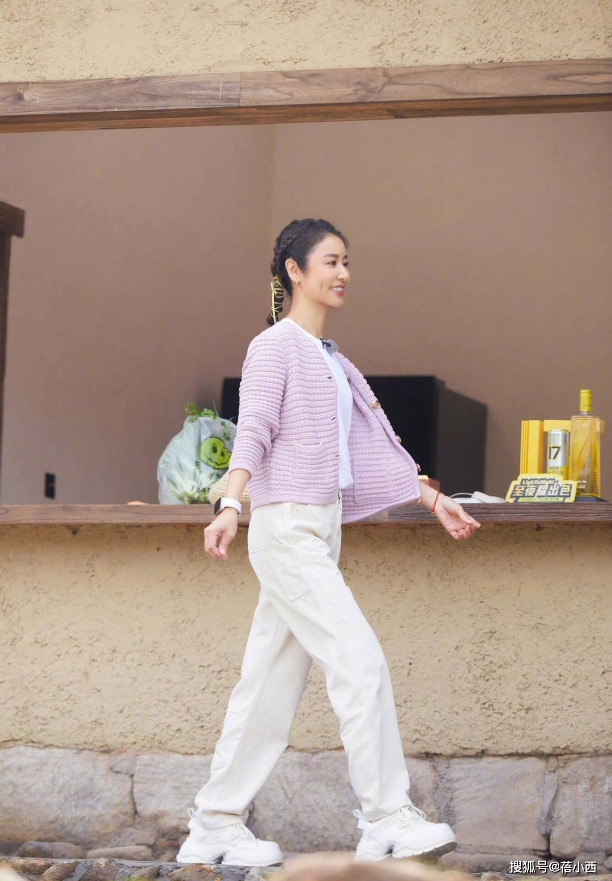 紫色的外套自带温柔感,下半身配上白色的休闲裤,能够很好地营造出一种随性又简约的气质,而紫色和白色的结合也比那种花里胡哨的配色更加耐看。