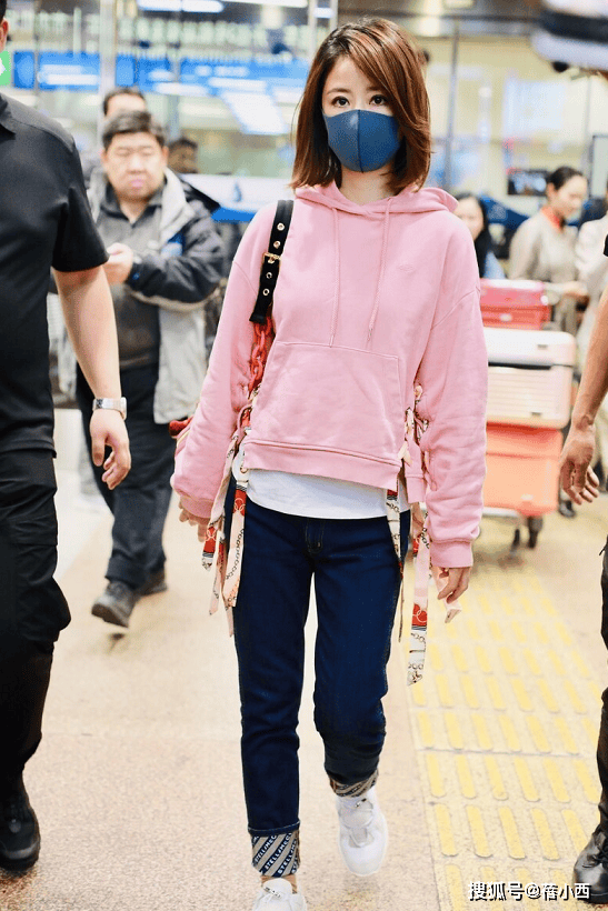 卫衣和牛仔裤的搭配方式是非常多的,想要显得身材更加苗条,你不妨看看林心如下面这身造型短款的卫衣配高腰的牛仔裤,瞬间就能够打造出大长腿。