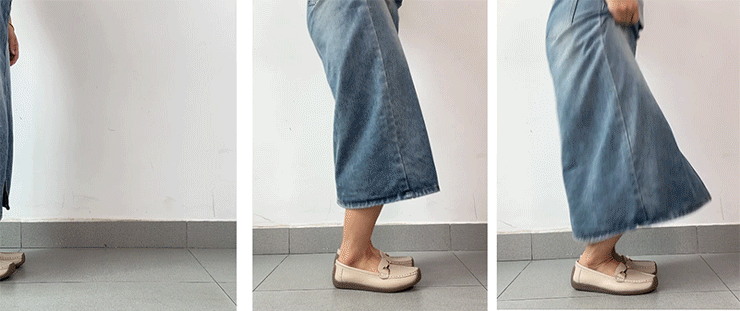 上脚也能起到一定的修饰作用,看裸脚和穿鞋的对比,哪个更显瘦一目了然~