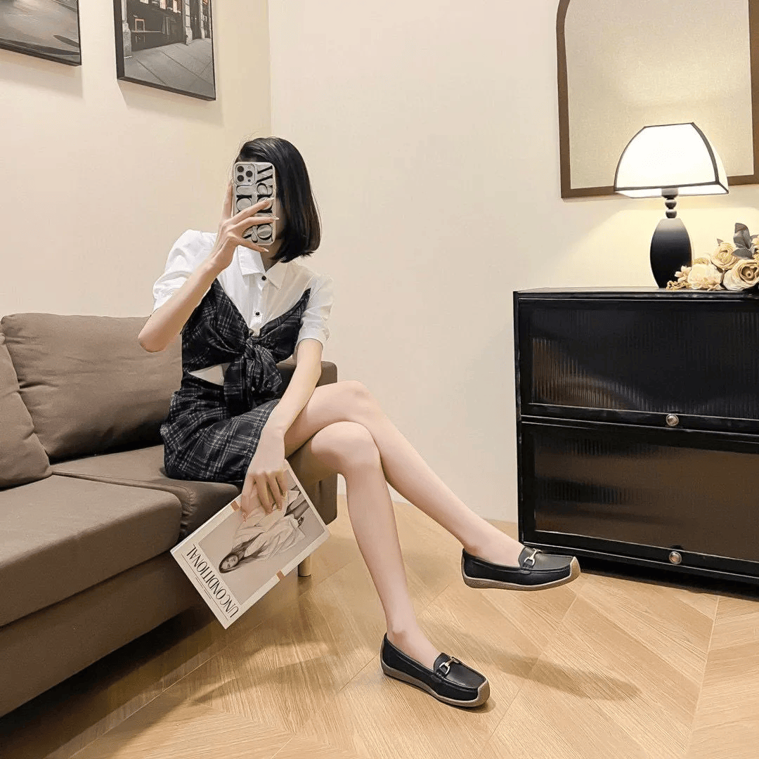 鞋头部分还做了大牌马衔扣设计,更是衬得鞋子简约又大方,贵气不少。