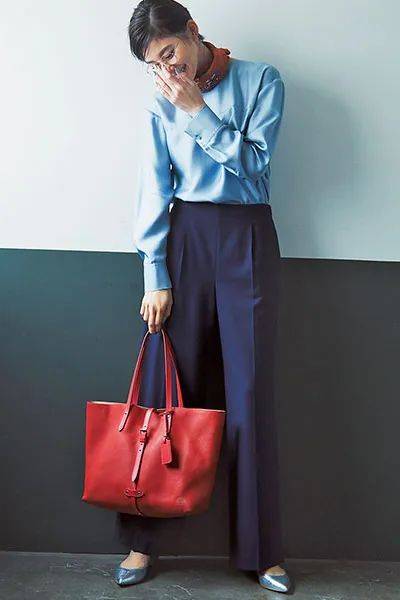 在职场中,用针织衫搭配一条修身西装裤或半身裙,再配上一双简洁的皮鞋,看起来精致干练却又不失亲和力,在细节处流露出女性的坚定。