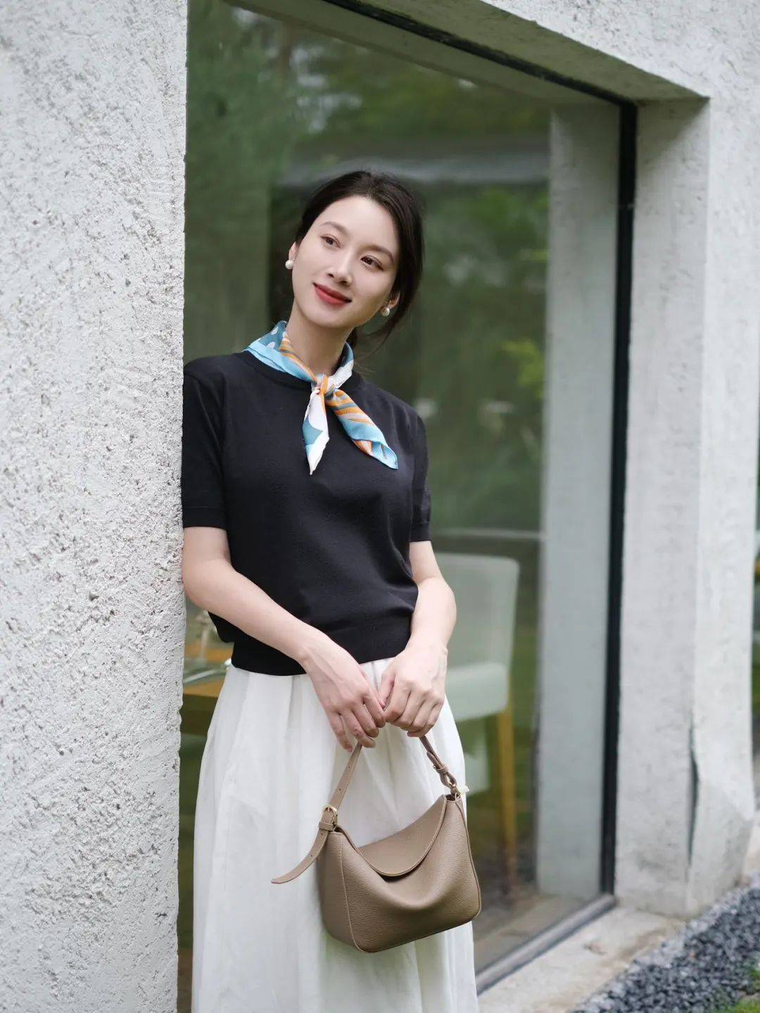 柔软的丝巾与高智感穿搭融合