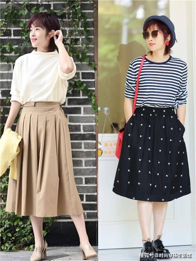 除了通过加入腰带,来显得腰线更加鲜明之外,大龄女性也可以从选款方面出发,挑选偏短的下摆和带有收紧效果的上衣单品。