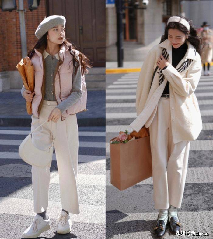 实穿好打理,兼顾舒适优雅感的高腰白色毛呢裤,其实更适应于秋冬季节的搭配。