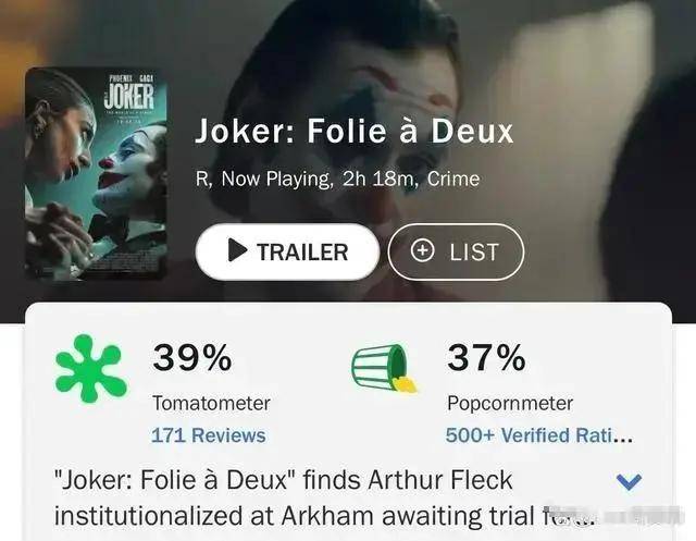 此番亮相的犯罪歌舞剧情片《小丑2:双重妄想》,以约4000万美元首映周末票房登上最新一期北美周末票房榜首。