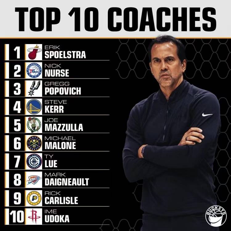 随着NBA新赛季季前赛的开打,美媒也是给出了不少关于新赛季的一些排名,近日他们评出了现役联盟当中最好的10位主帅。一支球队能够达到什么高度,他们的主帅至关重要,主教练带来的战术体系、纪律性以及他的临场应变能力,都是球队能够打出好成绩的关键,接下来我们来看看这份榜单合理吗?