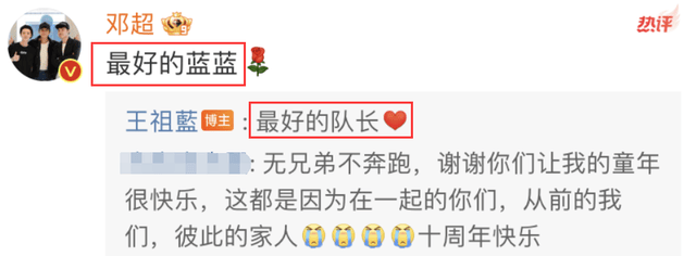 邓超与陈赫也在评论区回复了王祖蓝,跑男家族的情谊永远都在,只是大家如今各奔东西,但一起经历过的美好回忆始终都是他们人生路上最宝贵的一笔财富。