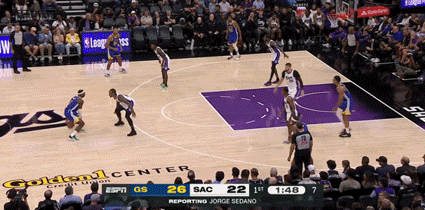 国王上半场三分球只有13中4,为啥还能领先?内线得分完爆勇士,是勇士的两倍多。在三分命中率只有30.8%的情况下,国王上半场投篮命中率高达58.7%!小萨博尼斯半场11分8篮板4助攻,福克斯11分3篮板,蒙克替补砍下13分。