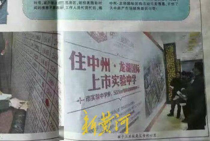 在乔德顺看来,中州·龙湖国际当时最大的卖点就是“实验中学的学区房”。根据2014年一则中州·龙湖国际的项目介绍,该项目位于驻马店市洪河大道西段(市实验中学隔壁),由中州房地产开发有限公司(以下简称:中州公司)所开发,项目占地230亩,总建筑面积50万平方米。此前多个宣传中也提到,中州·龙湖国际紧邻驻马店市最好的中学——驻马店市实验中学。一份当时的传单上更是直接印上了“住中州·龙湖国际,上市实验中学”的宣传语。
