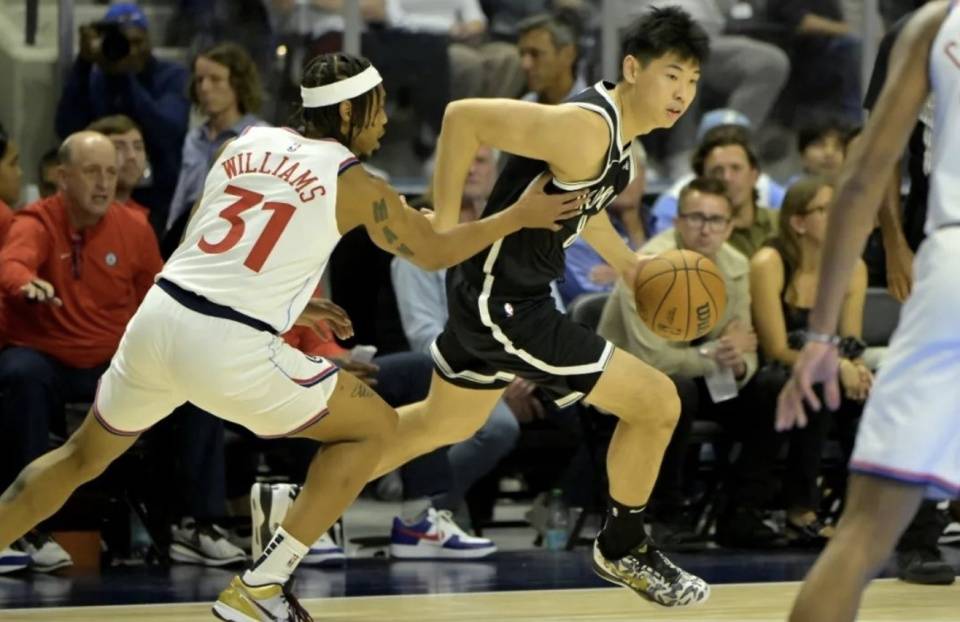 崔永熙虽然上场时间有限,但在这段时间里,他以其不畏挑战的表现,他第一次持球就选择了突破,无奈遇到了快船三名球员的防守围堵。这一幕不仅展示了崔永熙面对对手的强大防守时依然敢于出手的勇气,也体现了对手对他潜力的重视。在快船的严密防守下,崔永熙的首次出手未能命中,但这并没有影响他的信心和积极性。比赛最后两分钟,崔永熙的表现更加令人期待。尽管紧张情绪有所上升,但他依然凭借积极的拼抢获得了罚球机会。在罚球线上,崔永熙两罚一中,拿到了自己在NBA的第一分。这一刻,相信远在大洋彼岸的中国球迷无不欢呼,时隔2160天后,再有中国球员在NBA得分的时刻。上一次中国球员在NBA的得分,还要追溯到2018年10月31日,那是周琦最后一次代表火箭队出战的比赛,整个NBA生涯一共出场19场,得到24分 22个篮板 14次盖帽。