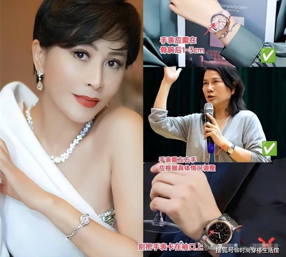 相比于胸针,手表更注重佩戴礼仪是否得体,具体而言,手表尽量戴在手腕后1-3cm处,避免卡在袖口,看上去也显得累赘。从左右手的佩戴效果上看,左手比较低调,右手拿则更为大气干练。