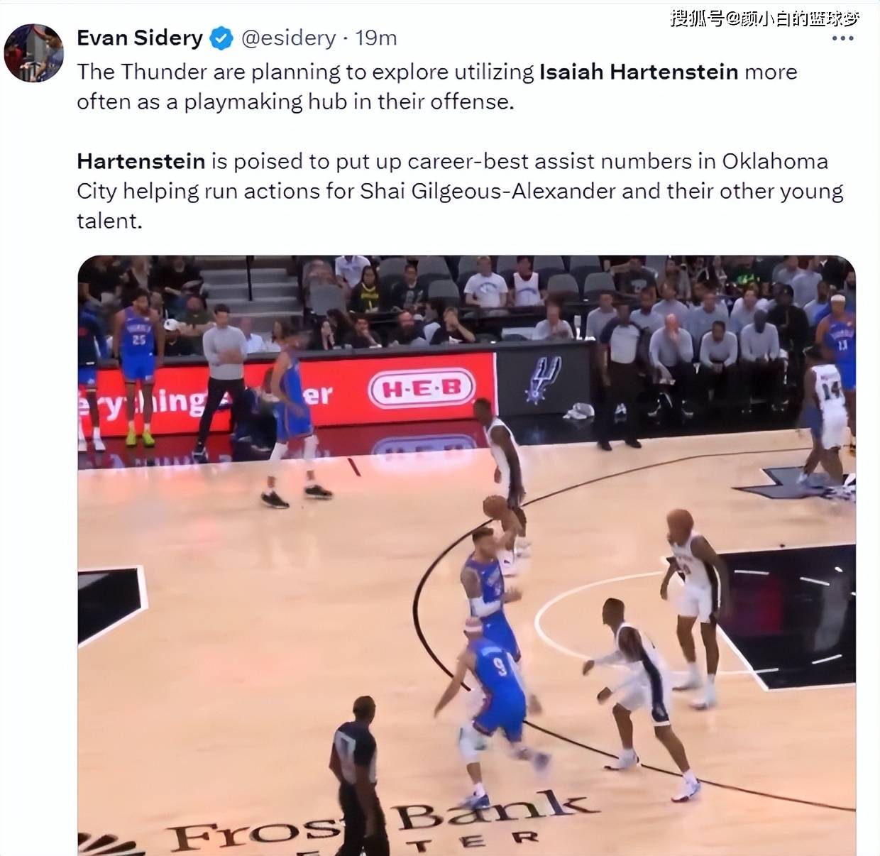 NBA记者埃文-斯迪瑞写道:雷霆正在计划利用哈腾作为他们的进攻组合核心,哈腾有望在OKC打出生涯最佳助攻数,他会帮助亚历山大与其他年轻的天才球员们进步。