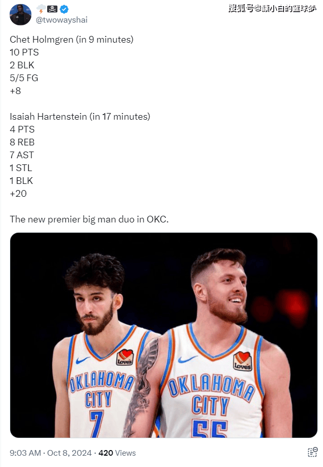 这场比赛雷霆并没有向外界揣测的那样用霍姆格伦打PF,哈腾打中锋,而是继续让霍姆格伦打先发中锋,哈腾打替补,卡鲁索也是替补,哈腾与卡鲁索是同上同下,两人都只打了17分06秒。
