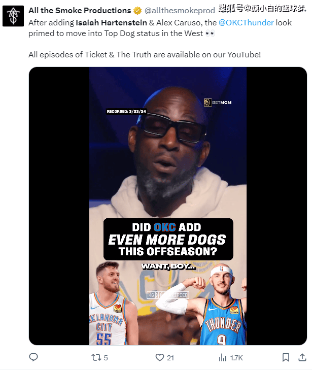加内特在播客节目中这样说道:OKC在增加了哈尔滕施泰因与卡鲁索后,他们看起来已经准备好成为西部老大。保罗-皮尔斯也赞同这个说法,因为雷霆已经没有了任何的短板。
