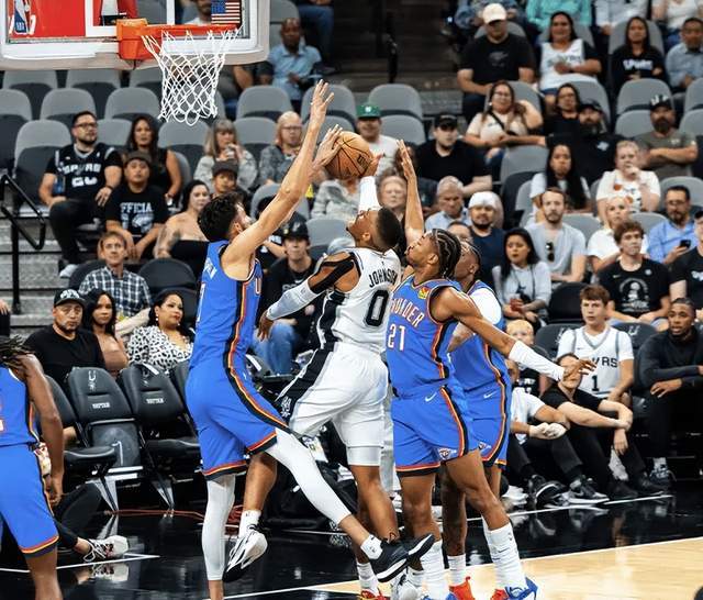 第二节,马穆克拉什维利与尚帕尼三分开火,马刺掀起反扑,杰威挺身而出,雷霆半场巩固13分优势。