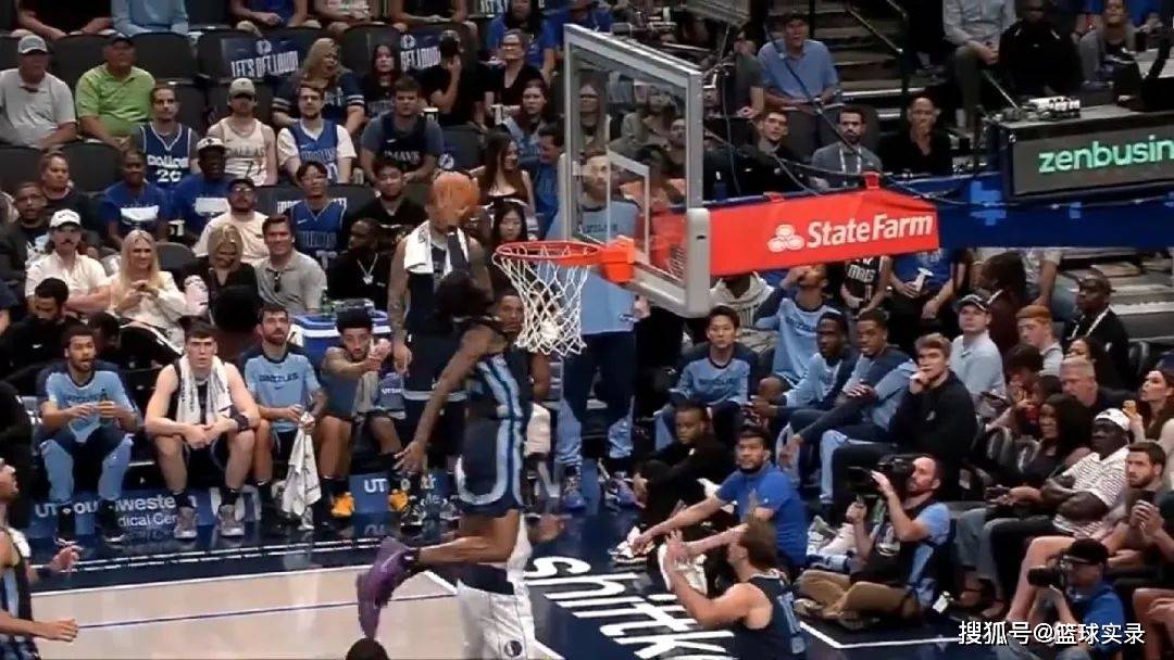 如同莫兰特一直所做的,他只要在场上就是个高光机器,即便季前赛也不例外,第二节刚刚开始,他就跟新秀扎克伊迪连线,突破吸引三人包夹,然后将球高高抛起,跟进的扎克伊迪空接送上一记双手大力灌篮。