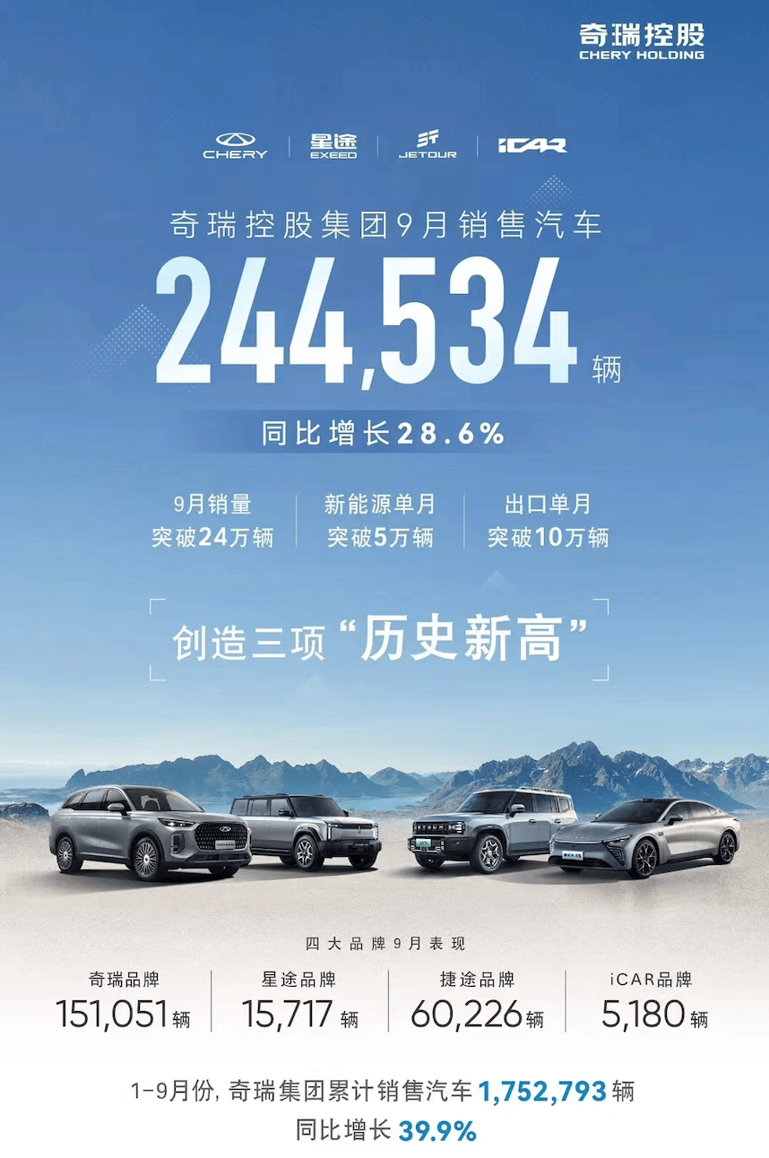 在新造车企业和央企“国家队”的销量增长之外,比亚迪的单月突破40万辆,奇瑞的出口突破10万辆,AITO问界35560辆的亮眼交付等等,大量优秀企业的业绩增长,共同推动了新能源汽车的“大盘飘红”,让新能源汽车成为今年国内经济发展不可或缺的支柱产业。