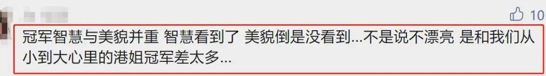 但随着一条名为“香港小姐10号 意难平”的词条冲上热搜,这一届“港姐选美”的质量也被扒了个底儿掉。