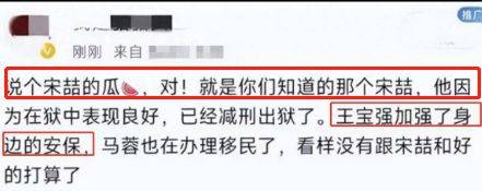 再根据网友的爆料。宋喆出狱已经是事实,并且他似乎对王宝强和马蓉都有所威胁。王宝强加强了身边的安保,马蓉甚至被传准备移民。