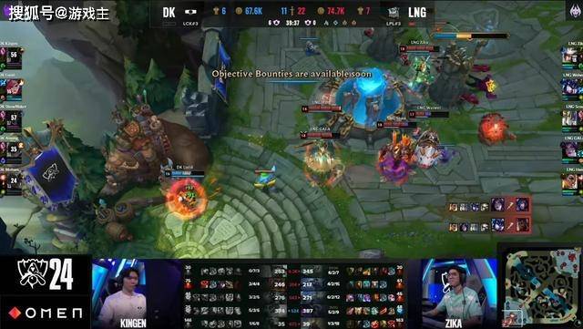 第二场比赛,dk战队的前期确实有一战之力,到了中期的时候,他们也是有机会将比赛扳平的。尤其是蓝BUFF处的那一波开团lng战队非常的激进,没有注意小火龙的位置,导致整个团战陷入了劣势,Dk战队处于追击之势,这个时候scout的塞拉斯站了出来,一个牛头的大招,在对方四个人之中击杀一人,全身而退,随后,gala的虚空索敌也是带走对方一人,本来已经处于劣势的团战,硬生生的被双c给操作回来了。
