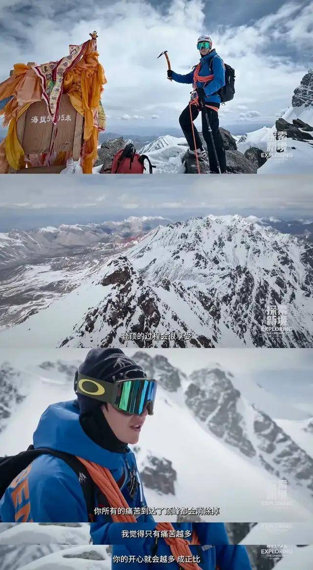 不仅如此,挑战雪山时谈及痛苦,王一博坦言“登顶的过程会很享受,你所有的痛苦到达了顶峰都会消除掉,我觉得只有痛苦越多,你的开心就会越多,成正比。”更进一步,他也有自己对困难、未知的理解,“我从来就没有去想过后果是怎么样的,好像我对于未知不会有那种恐惧,因为好像我也一直都很喜欢去尝试新鲜的事物。”