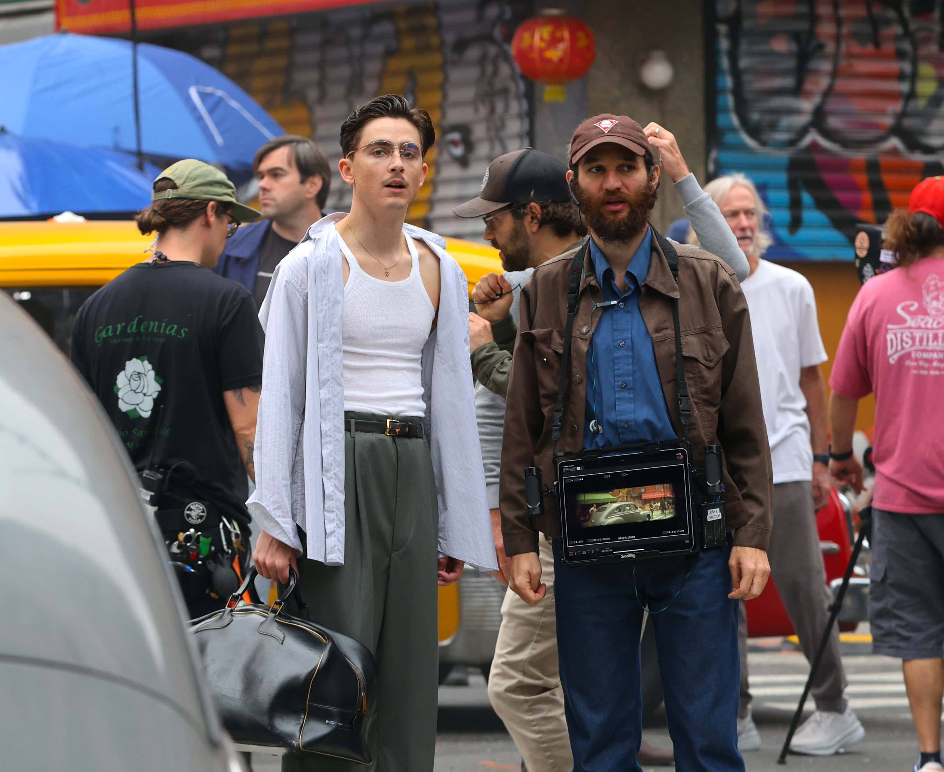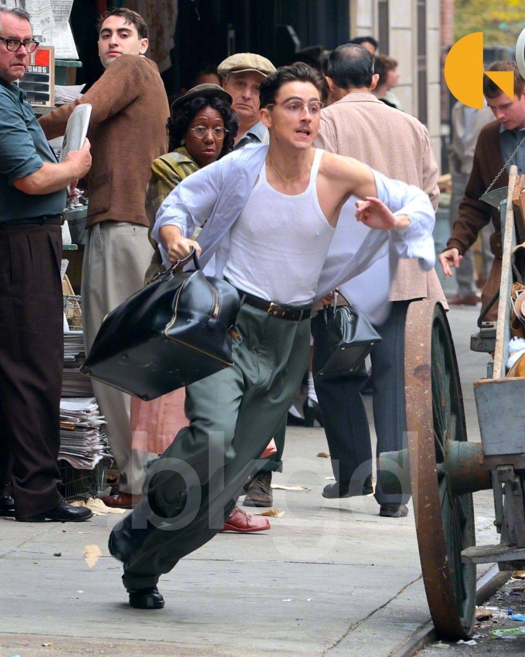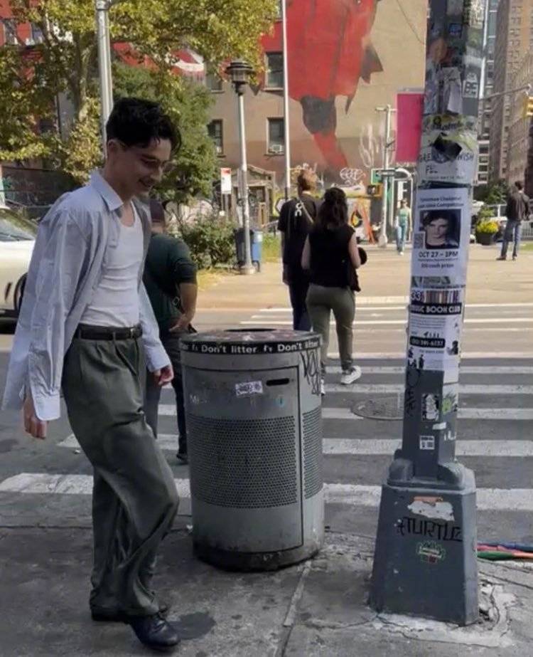 搜狐娱乐讯 提莫西·查拉梅主演的A24乒乓题材传记新片《至尊马蒂》纽约热拍中,“甜茶”饰演的美国乒乓球运动员马蒂·赖斯曼肆意奔跑。还恰好与路边张贴的甜茶模仿大赛海报同框。
