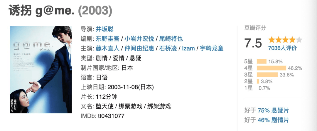其实这片就是东野圭吾小说改编的,之前日版也拍过几次,最出名的应该是之前藤木直人和仲间由纪惠演的那一版,我还有点印象。