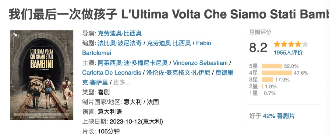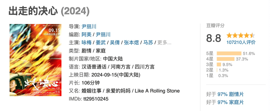 国庆档院线片唯一上榜影片,也是国庆档院线新片里的最高分片,我们之前也推荐过,还是可以考虑在大银幕去感受一下的。
