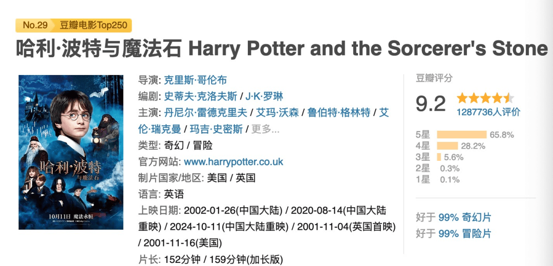 只不过,还是要给朋友们再告知一下,从10月11日开始,每7天会重映一部哈利波特电影,11号就是第一部,18号就是第二部,以此类推。