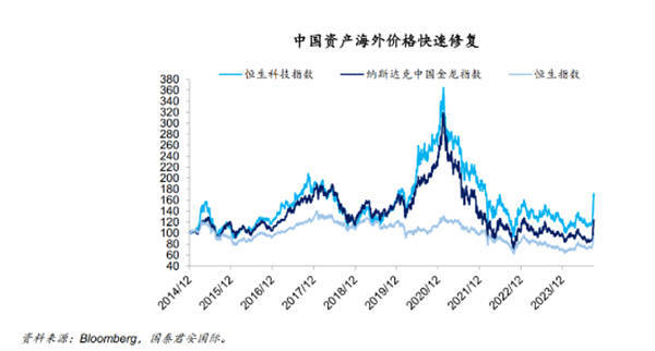 “近期美联储超预期大幅减息,叠加国内持续出台一系列政策组合拳,中国资产价格持续从低位快速修复。港股及A股市场在国庆前后多日上涨,而同为中国资产的美股中概股同样表现强劲。”国泰君安国际指出。