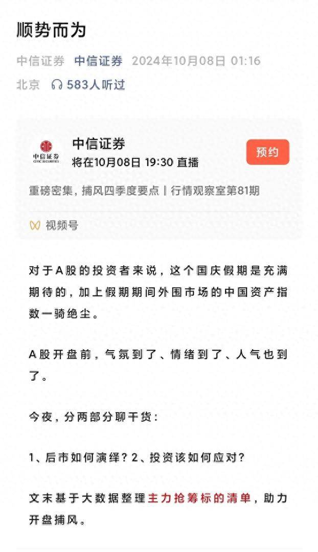 10月8日凌晨,龙头券商中信证券在其微信公众号发文表示,政策信号出现重大变化,市场预期出现大逆转,行情将迎来大拐点。在预期大逆转后,以散户为主的增量资金集中入场为特征,脉冲式上涨短期内还会持续。