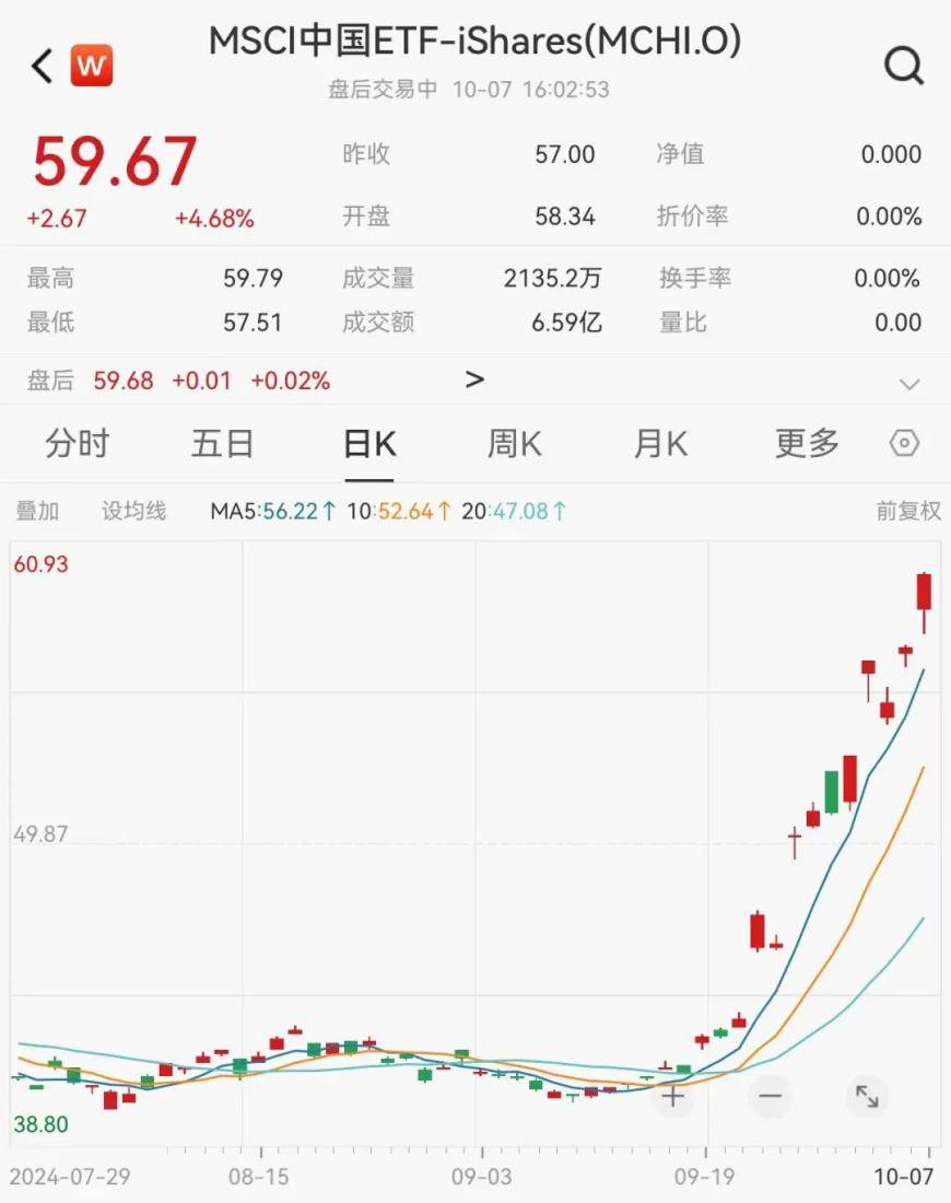中概股继续保持强劲涨势。10月8日,富时中国A50指数上涨1.98%,iShares MSCI中国ETF上涨4.68%,三倍做多富时中国的Direxion ETF(代码:YINN)涨幅更是高达13.68%。此外,纳斯达克中国金龙指数虽然在10月8号表现平稳,但是自9月30日来已经上涨了11.6%。