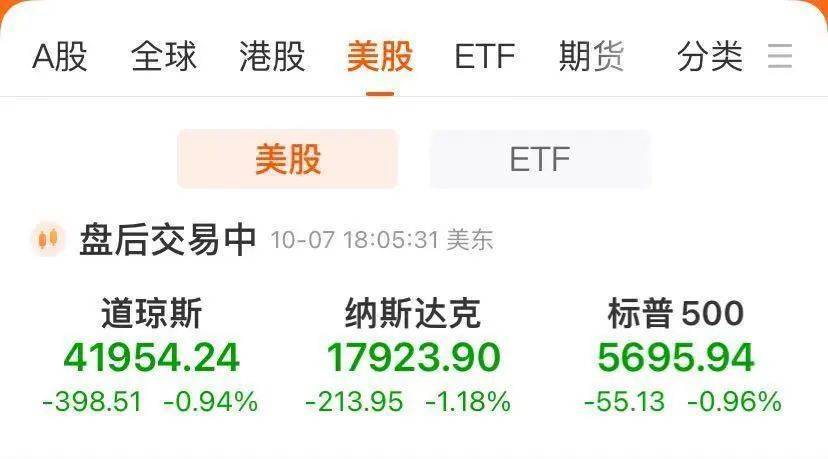 当地时间10月7日,截至收盘,美股三大指数集体收跌,道指跌0.94%,纳指跌1.18%,标普500指数跌0.96%。超微电脑收涨16%,创5月15日以来最大单日涨幅。热门中概股涨跌不一,纳斯达克中国金龙指数涨0.07%。富时A50期指连续夜盘收涨1.98%,报16204.00点。