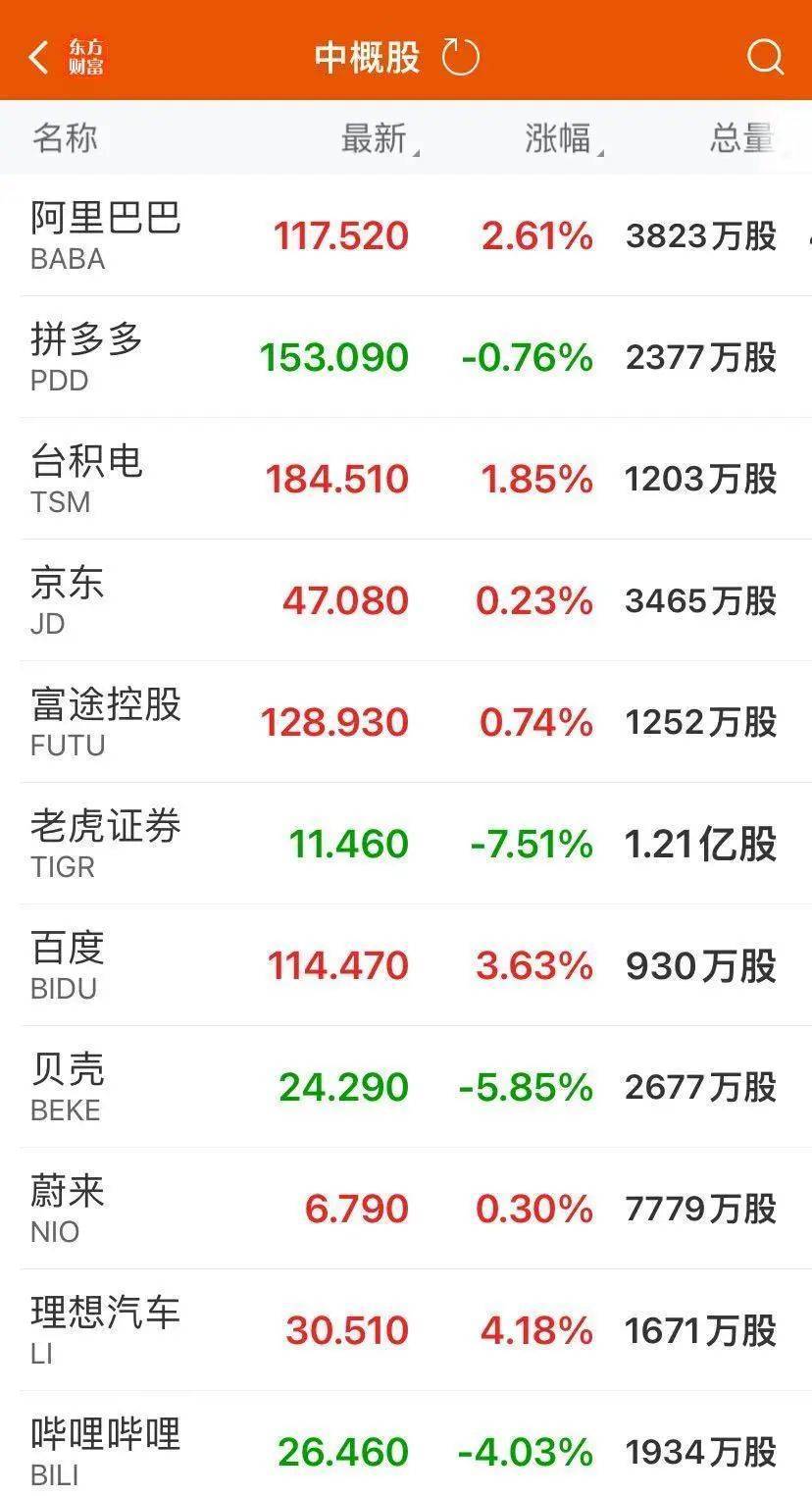 截至收盘,纳斯达克中国金龙指数涨0.07%。理想汽车涨超4%,百度涨超3%,阿里巴巴、小鹏汽车涨超2%,微博、蔚来、京东小幅上涨。哔哩哔哩跌超4%,爱奇艺跌超3%,网易跌超2%,腾讯音乐跌超1%,唯品会、拼多多、满帮小幅下跌。